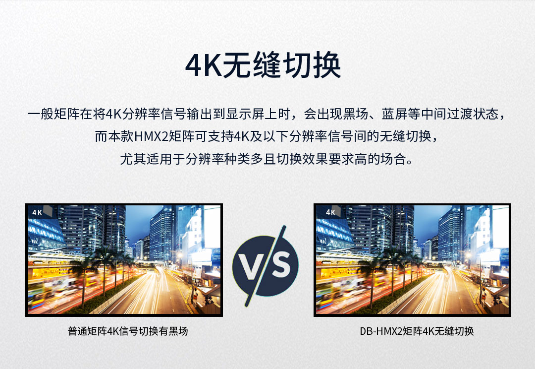 一般矩陣在將4K分辨率信號輸出到顯示屏上時,會出現黑場、藍屏等中間過渡狀態,