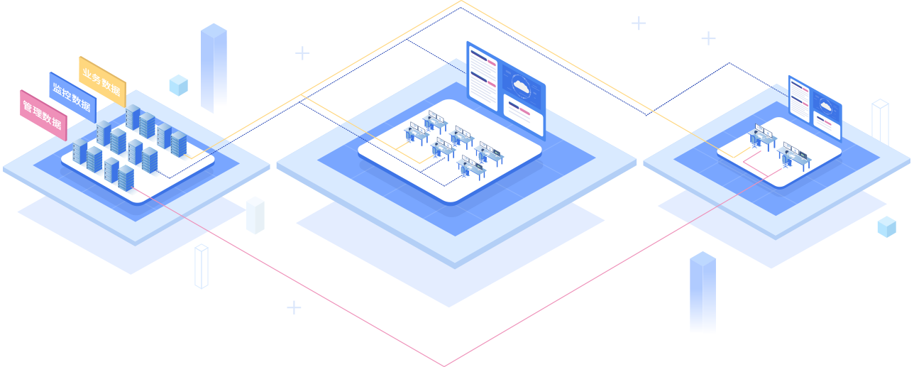 設(shè)備在機(jī)房進(jìn)行統(tǒng)一管理,形成資源池,保障信息安全,便于排查維護(hù); 辦公區(qū)設(shè)備簡化,減少散熱、降低噪音,優(yōu)化操作人員的工作環(huán)境。