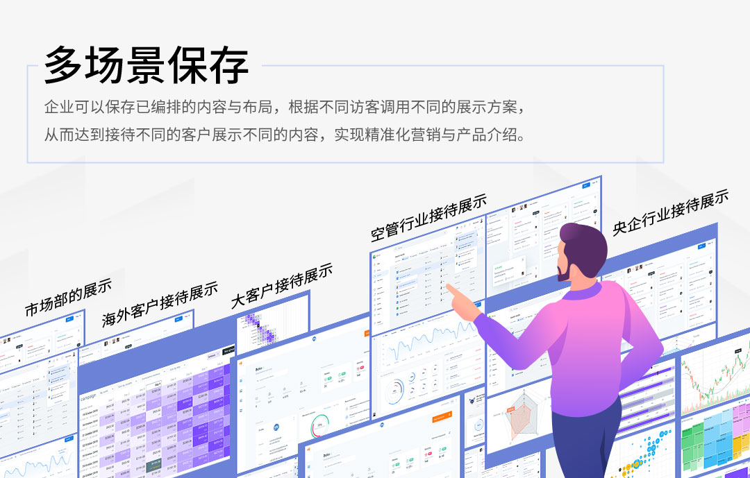企業可以保存已編排的內容與布局,根據不同訪客調用不同的展示方案,